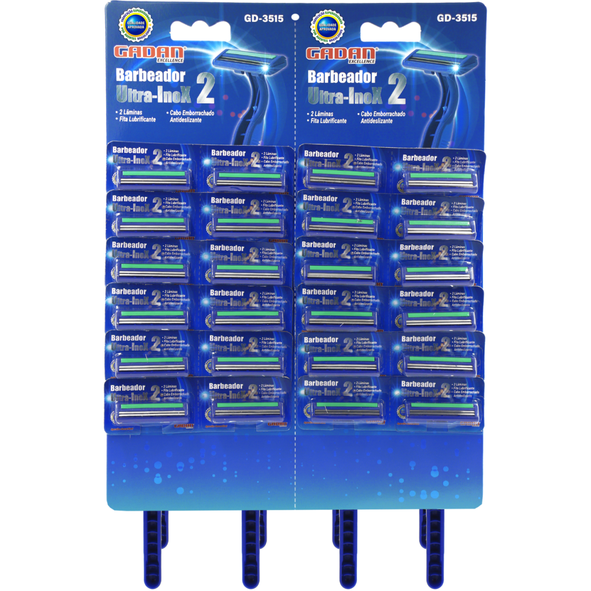 BARBEADOR ULTRA INOX 2 - 2 LÂMINAS CABO EMBORRACHADO CARTELA C/ 24 PCS - GADAN
